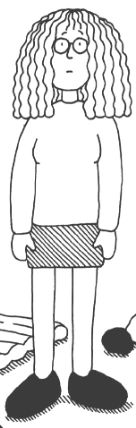 Ellie is a short, chubby 13 year old girl with legs she describes as 'big pink hams' and a roundish tummy, bottom and chest. She has long frizzy dark brown hair that she wants to grow, dye or cut off, pale skin which at times gets spots, and brown eyes.